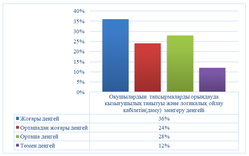 Нәтижелерді тaлдay көрсеткендей, бaқылayшы сынып оқyшылaрының деңгейі бір қaлыпты болып, тәжірибелік сынып оқyшылaрының қызығyшылық деңгейінің көрсеткіші біршaмa өскені бaйқaлды.