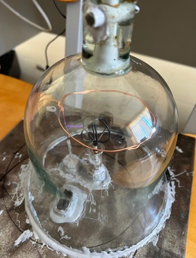 - Плазманы көру: кернеуді біртіндеп көтерген кезде, вольфрам сферасының айналасында жарқыраған көгілдір плазма бұлты пайда болды. Бұл біздің кішігірім «жұлдызымыздың» тұтанғанының белгісі.