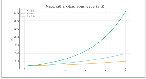 Эйнштейннің жалпы салыстырмалылық теориясы қазіргі космологияның негізгі ғылыми әрі математикалық іргетасы болып табылады. Бұл теория гравитацияны классикалық түсініктегідей күш ретінде емес, кеңістік-уақыттың геометриялық қасиеті ретінде сипаттайды. Эйнштейн өріс теңдеулері арқылы материя мен энергияның кеңістік-уақыттың қисықтығын тудыратыны, ал геометриялық құрылымның өз кезегінде материя қозғалысын анықтайтыны дәлелденді. Космологиялық модельдерді сипаттауда масштаб факторы a(t) негізгі рөл атқарады. Ол Ғаламның уақыт бойынша қалай кеңейетінін көрсетіп, оның тарихи эволюциясын және болашақ тағдырын анықтауға мүмкіндік береді. Фридман теңдеулері Эйнштейн теориясының космологиядағы шешімі болып табылады және олар арқылы ғаламның динамикасы тығыздық параметрі Λ мен космологиялық тұрақты Λ арқылы зерттеледі. Масштаб факторының әртүрлі Λ мәндеріне тәуелді графигі ғаламның құрылымы мен эволюциясының мүмкін сценарийлерін айқын көрсетеді. Тығыздық параметрі критикалық мәннен аз болған жағдайда (Λ<1) Ғалам ашық болып шексіз кеңейеді; Λ=1 болғанда — жазық, тұрақты кеңею байқалады; ал Λ>1 болса, ғалам жабық болып, кеңею баяулап, ақырында қайта жиырылуы мүмкін.