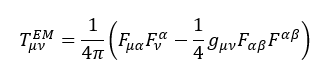 «Электромагниттік өріс тензоры » Tμν/EM деп қарастыратын болсақ, онда зарядталған денелерді сипаттайтын тензор Максвелл теңдеулері шығады: