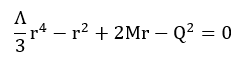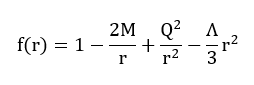 Теңдеудегі r – радиалды координата, қара саңылаудың көкжиектерінің радиусын анықтайтын айнымалы, M – қара саңылаудың массасы, кеңістік-уақыттың гравитациялық қасиеттеріне әсер ететін шама, Q – қара саңылаудың электр заряды, зарядтың кеңістік-уақыт геометриясына қосатын үлесін сипаттайды, Λ – космологиялық тұрақты, вакуум энергиясының әсерін және ғаламның кеңеюін көрсетеді.