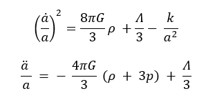 Кеңею динамикасы Фридман теңдеулері арқылы анықталады: