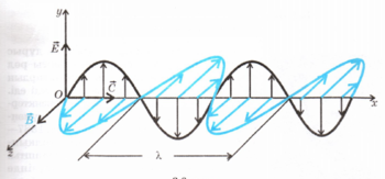 Бұл өрістің тербелістері жaқын жaтқaн нүктелері электpомганиттік тербеліcтеp көзі болып тaбылғандықтан бір-біріне перпендикуляр электр өрісінің кернеулік векторы мен магнит өрісі индукциясы векторының тербелістері кеш болып жетеді.